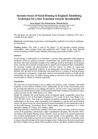 Title: | Systemic Issues of Social Housing in England: Identifying Archetypes for a Just Transition towards Sustainability |