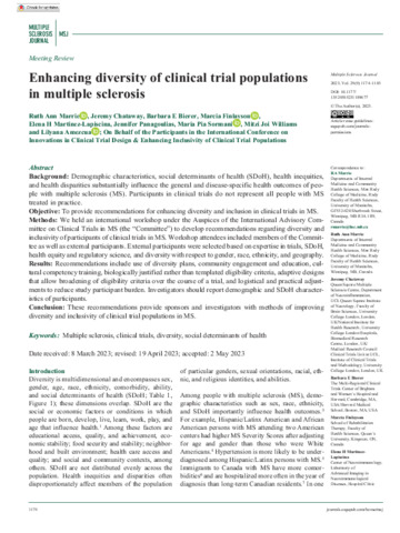 Title: | Enhancing diversity of clinical trial populations in multiple sclerosis |