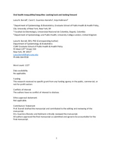 Title: | Oral health inequalities/inequities: Looking back and looking forward |