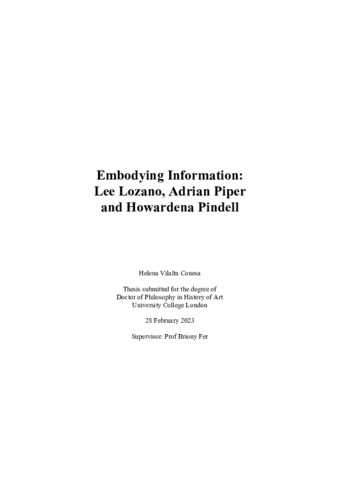 Title: | Embodying Information: Lee Lozano, Adrian Piper and Howardena Pindell |