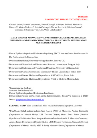 Daily time use among individuals with schizophrenia spectrum disorders and unaffected controls: Results from the DiAPAson multicentric project.
