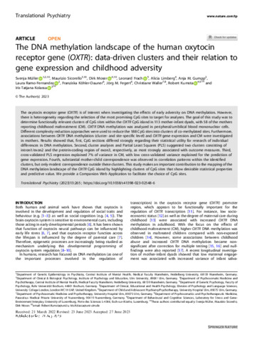 Title: | The DNA methylation landscape of the human oxytocin receptor gene (OXTR): data-driven clusters and their relation to gene expression and childhood adversity |