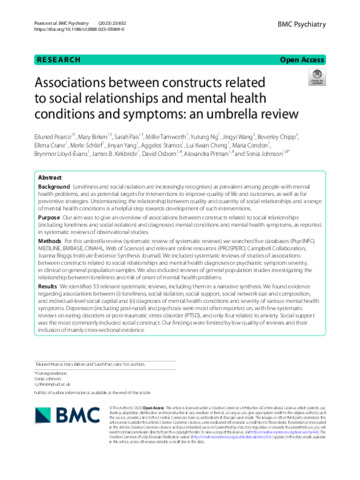 | Title: | Associations between constructs related to social relationships and mental health conditions and symptoms: an umbrella review |