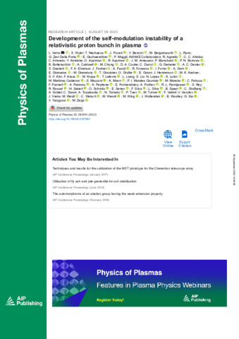 Development of the self-modulation instability of a relativistic proton bunch in plasma.