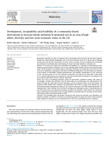 Title: | Development, acceptability and feasibility of a community-based intervention to increase timely initiation of antenatal care in an area of high ethnic diversity and low socio-economic status in the UK |