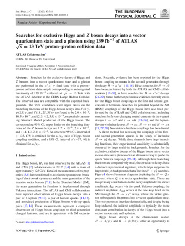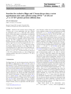 Title: | Searches for exclusive Higgs and Z boson decays into a vector quarkonium state and a photon using 139 fb^{-1} of ATLAS \sqrt{s}=13 TeV proton–proton collision data |