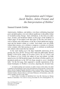 Interpretation and Critique: Jacob Taubes, Julien Freund, and the Interpretation of Hobbes.