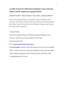 Calder et al. (2021) A profile of expressive inflectional morphology in early school age children with developmental language disorder_GREEN.pdf - Accepted Version Download (612kB) | Preview |