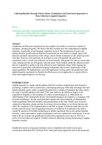 Title: | Collecting Big Data Through Citizen Science: Gamification and Game-based Approaches to Data Collection in Applied Linguistics |