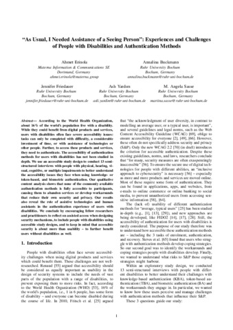 “As Usual, I Needed Assistance of a Seeing Person”: Experiences and Challenges of People with Disabilities and Authentication Methods.