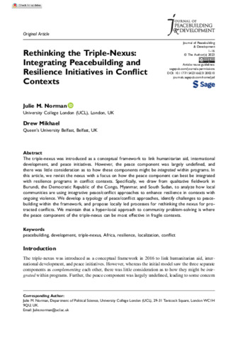 Title: | Rethinking the Triple-Nexus: Integrating Peacebuilding and Resilience Initiatives in Conflict Contexts |