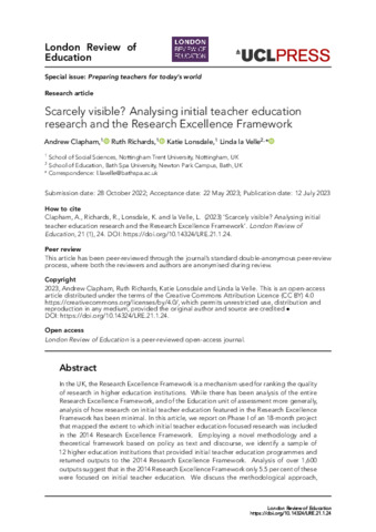Title: | Scarcely visible? Analysing initial teacher education research and the Research Excellence Framework |