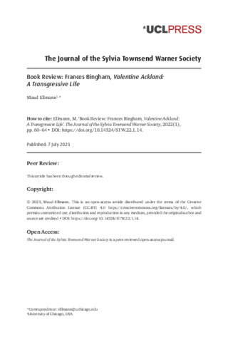 Title: | Book Review: Frances Bingham, Valentine Ackland: A Transgressive Life |