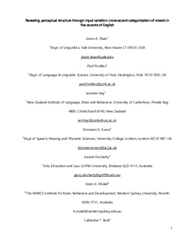 Title: | Revealing perceptual structure through input variation: cross-accent categorization of vowels in five accents of English |