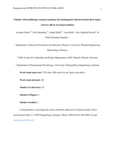 Title: | Patients with multi-drug-resistant organisms feel inadequately informed about their status: adverse effects of contact isolation |