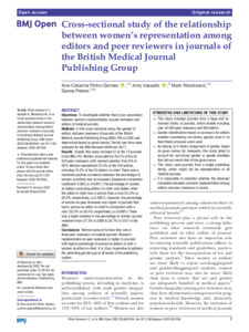 Title: | Cross-sectional study of the relationship between women's representation among editors and peer reviewers in journals of the British Medical Journal Publishing Group |