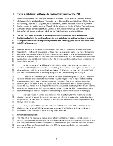 Title: | Three institutional pathways to envision the future of the IPCC |