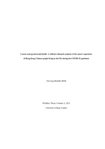 Title: | Cancer and psychosocial health: A reflexive thematic analysis of the cancer experience of Hong Kong Chinese people living in the UK during the COVID-19 pandemic |