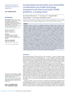 Title: | Incorporating environmental and sustainability considerations into health technology assessment and clinical and public health guidelines: a scoping review |