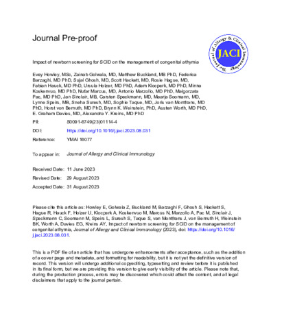 Title: | Impact of newborn screening for SCID on the management of congenital athymia |