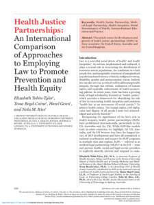 Title: | Health Justice Partnerships: An International Comparison of Approaches to Employing Law to Promote Prevention and Health Equity |