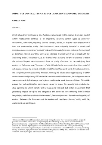 Penn_Privity of Contract JIBLR final draft copy.pdf - Accepted Version Download (498kB) | Preview |