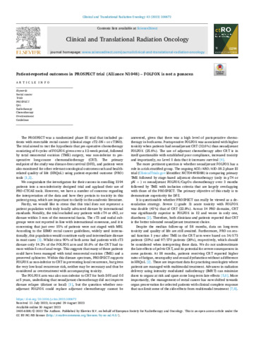 | Title: | Patient-reported outcomes in PROSPECT trial (Alliance N1048) – FOLFOX is not a panacea |
