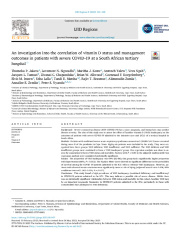 Zumla_An investigation into the correlation of vitamin D status and management outcomes in patients with severe COVID-19 at a South African tertiary hospital_VoR.pdf - Published Version Download (1MB) | Preview |