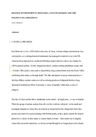 Title: | Hostile Environments: Refugees, Asylum Seekers and the Politics of Loneliness |