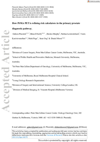 | Title: | How prostate-specific membrane antigen positron emission tomography is refining risk calculators in the primary prostate diagnostic pathway |