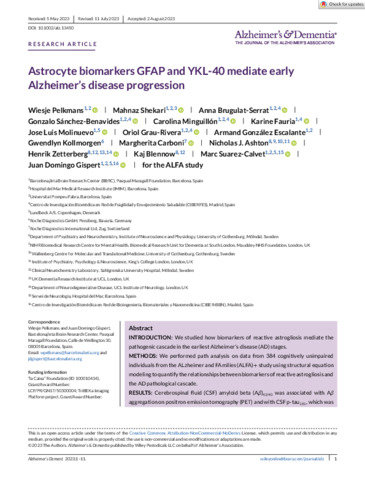 | Title: | Astrocyte biomarkers GFAP and YKL-40 mediate early Alzheimer's disease progression |