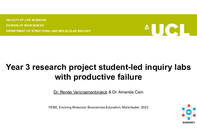 Title: | Year 3 research project student-led inquiry labs with productive failure |