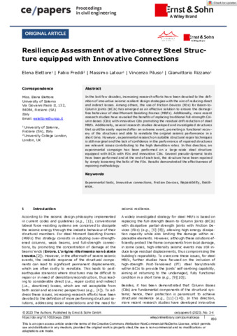| Title: | Resilience Assessment of a two-storey Steel Structure equipped with Innovative Connections |