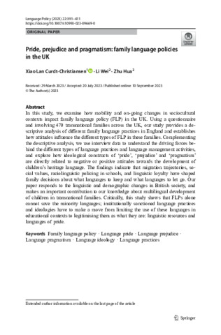 | Title: | Pride, prejudice and pragmatism: family language policies in the UK |