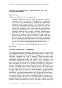 Title: | Can GeoGebra’s augmented reality tool provide a looking glass into a mathematical wonderland? |