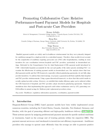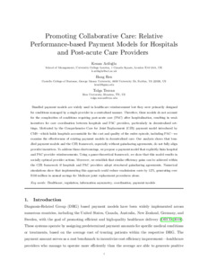 | Title: | Promoting Collaborative Care: Relative Performance-based Payment Models for Hospitals and Post-acute Care Providers |