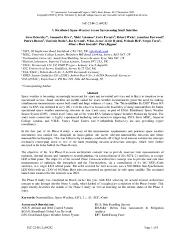 Title: | A Distributed Space-Weather Sensor System using Small Satellites |