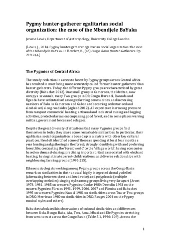 Title: | Egalitarian social organization: The case of the mbendjele baYaka |