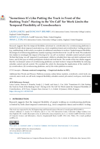 | Title: | “Sometimes it’s Like Putting the Track in Front of the Rushing Train”: Having to Be ‘On Call’ for Work Limits the Temporal Flexibility of Crowdworkers |