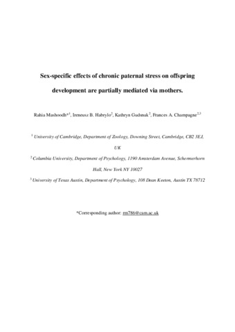 Title: | Sex-specific effects of chronic paternal stress on offspring development are partially mediated via mothers |