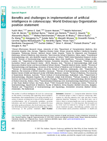 | Title: | Benefits and challenges in implementation of artificial intelligence in colonoscopy: World Endoscopy Organization position statement |