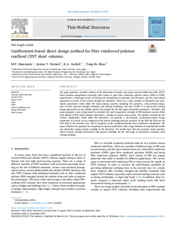 Title: | Confinement-based direct design method for fibre reinforced polymer confined CFST short columns |