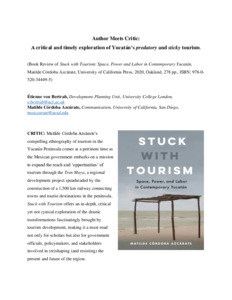 Book review of Stuck with Tourism: Space, Power and Labor in Contemporary Yucatán, by Matilde Córdoba Azcárate, Oakland, University of California Press, 2020, 278 pp., ISBN: 978-0- 520-34449-5