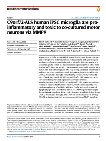 | Title: | C9orf72-ALS human iPSC microglia are pro-inflammatory and toxic to co-cultured motor neurons via MMP9 |