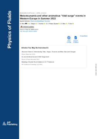 Title: | Meteotsunamis and other anomalous “tidal surge” events in Western Europe in Summer 2022 |