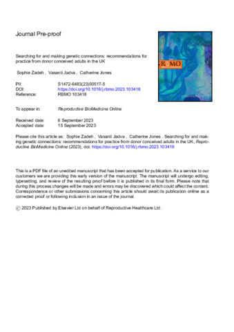 Zadeh_Searching for and making genetic connections- recommendations for practice from donor conceived adults in the UK_Pre-proof.pdf - Accepted Version Download (782kB) | Preview |