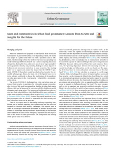 Title: | State and communities in urban food governance: Lessons from COVID and insights for the future |