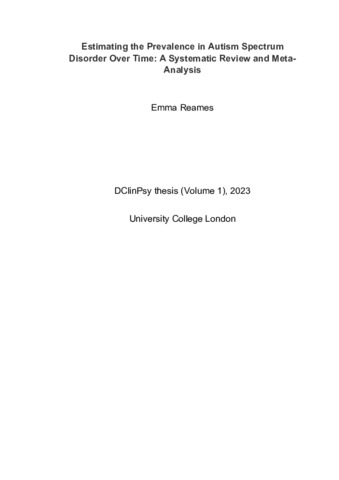 | Title: | Estimating the Prevalence in Autism Spectrum Disorder Over Time: A Systematic Review and Meta-Analysis |