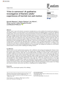 Title: | 'I live in extremes': A qualitative investigation of Autistic adults' experiences of inertial rest and motion |