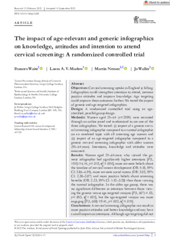 The impact of age-relevant and generic infographics on knowledge, attitudes and intention to attend cervical screening: A randomized controlled trial.